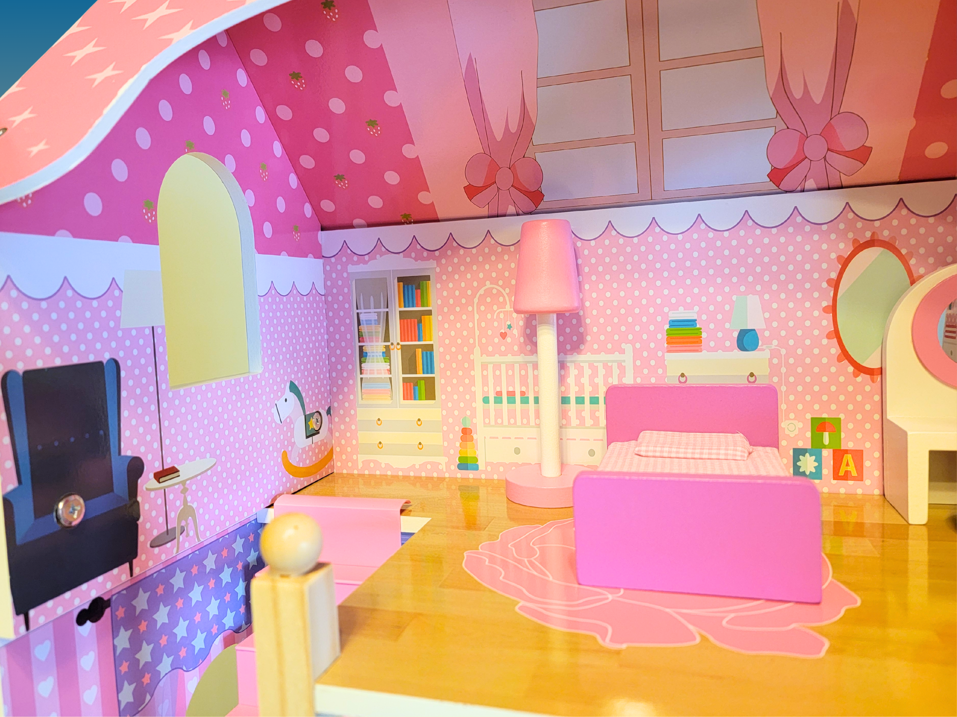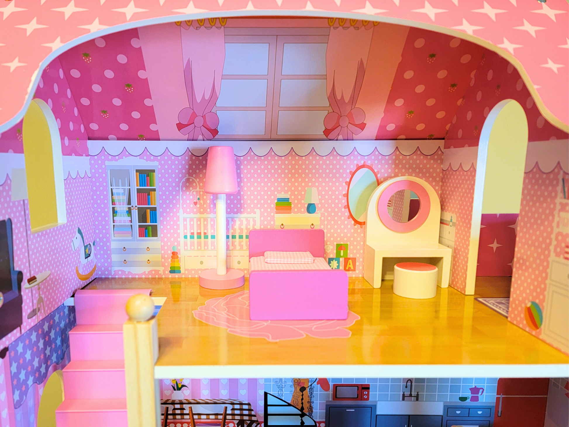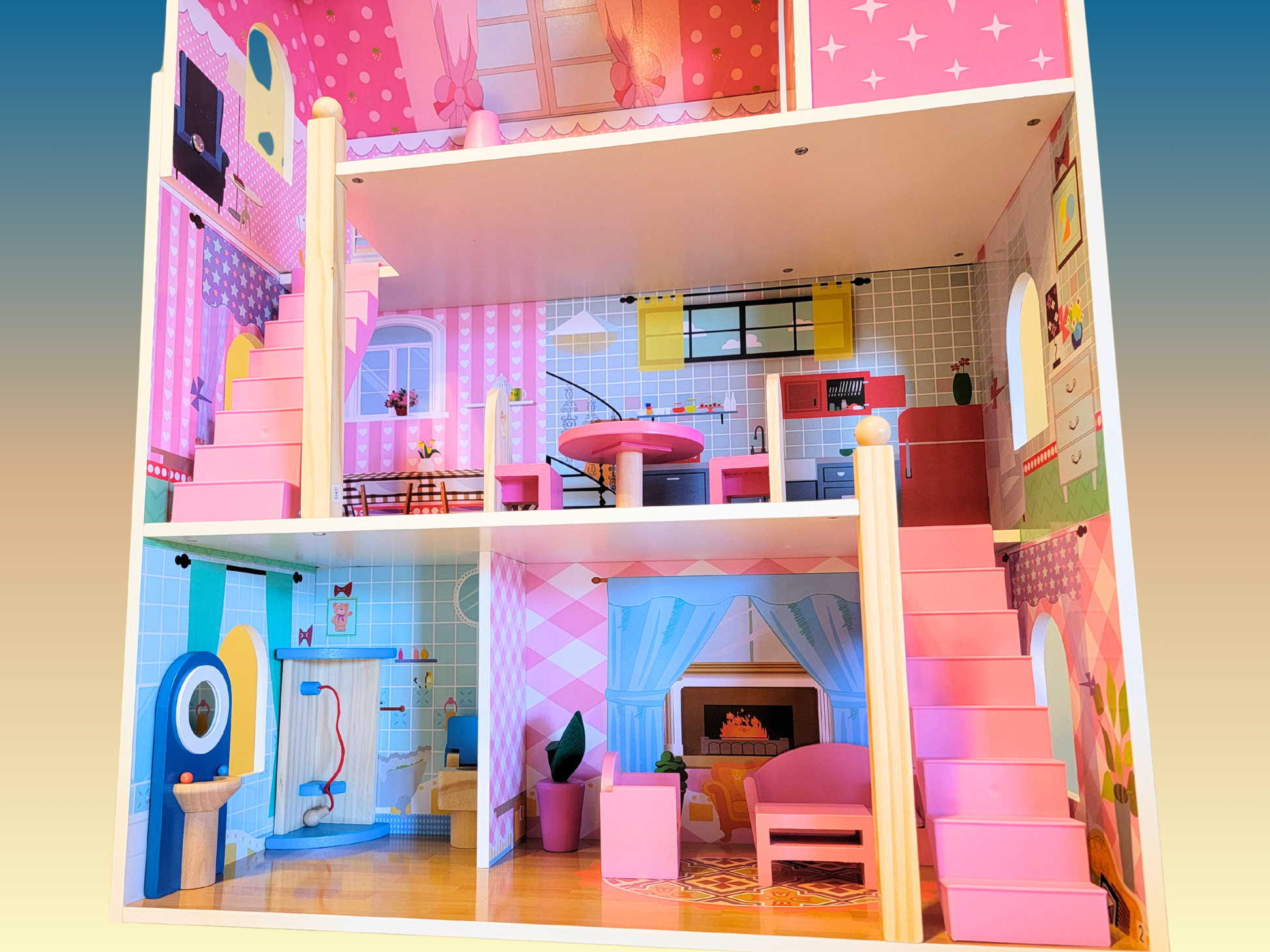 DURABLE & CHILD-SAFE: Crafted from high-quality wood and finished with non-toxic paints, this dollhouse is built to withstand energetic play. It is EN71 & CPC Certified, meeting strict international safety standards for your complete peace of mind.