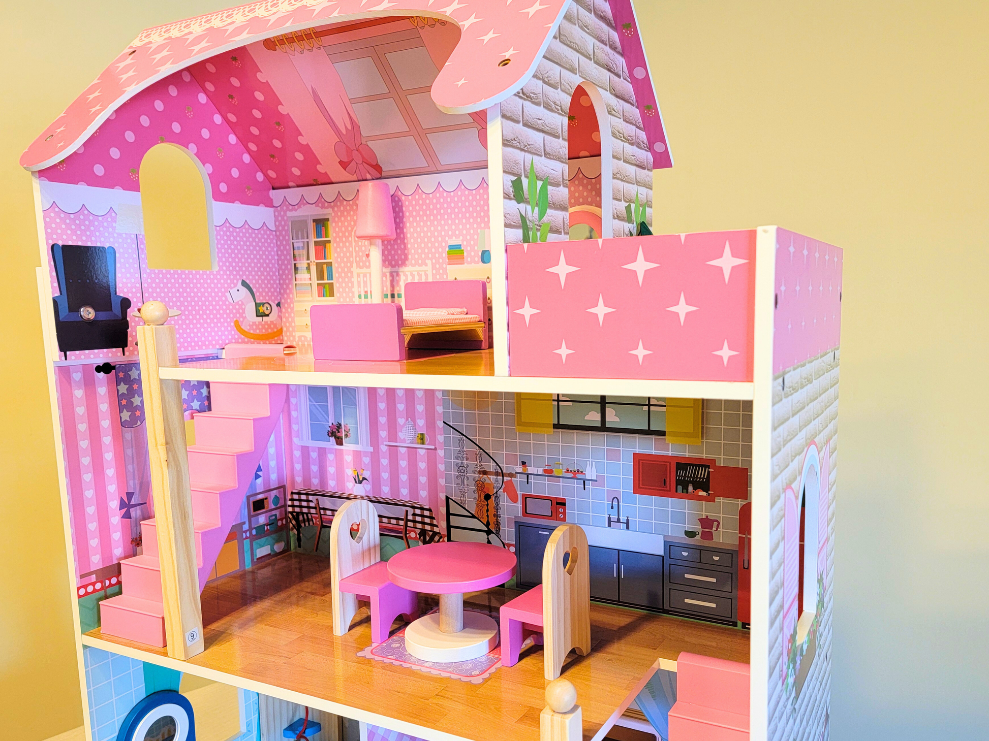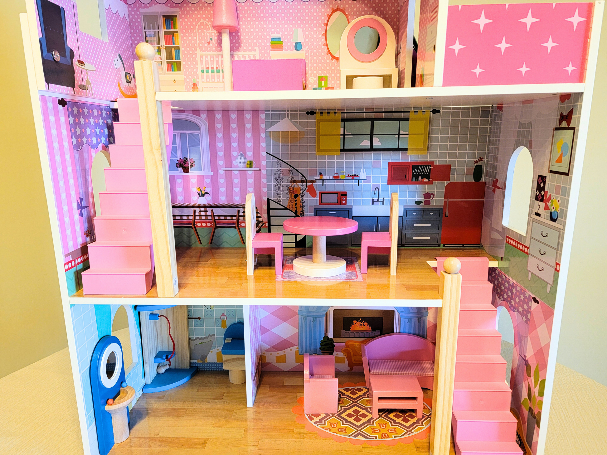GRAND & DETAILED DESIGN: This is no ordinary dollhouse! With 3 full floors and multiple rooms, it provides ample space for arranging furniture and creating countless stories. The lovely pink color and decorative details are specially designed to captivate and delight.