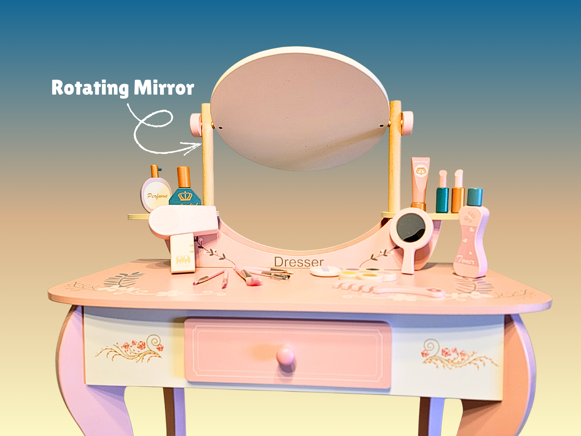 DURABLE & BUILT TO LAST: With a robust weight of 9 kg, this dressing table is incredibly sturdy and stable, built to withstand years of energetic play. It's a high-quality toy that can be passed down to siblings, offering exceptional long-term value.